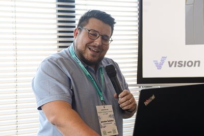 Vít Valenta z ELVCACu představil budoucnost servisu a logistiky pomocí hlasem ovládaných brýlí pro asistovanou realitu, které umožňují technikům pracovat s volnýma rukama a mít data z ERP stále na očích.