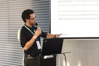 Arťom Kuranov ukázal, jak propojení s nástrojem Saleskit pomáhá obchodu a marketingu. Obchodníci vidí, které firmy navštívily web, a mají k dispozici obohacená data o kontaktech a obratech přímo v systému.